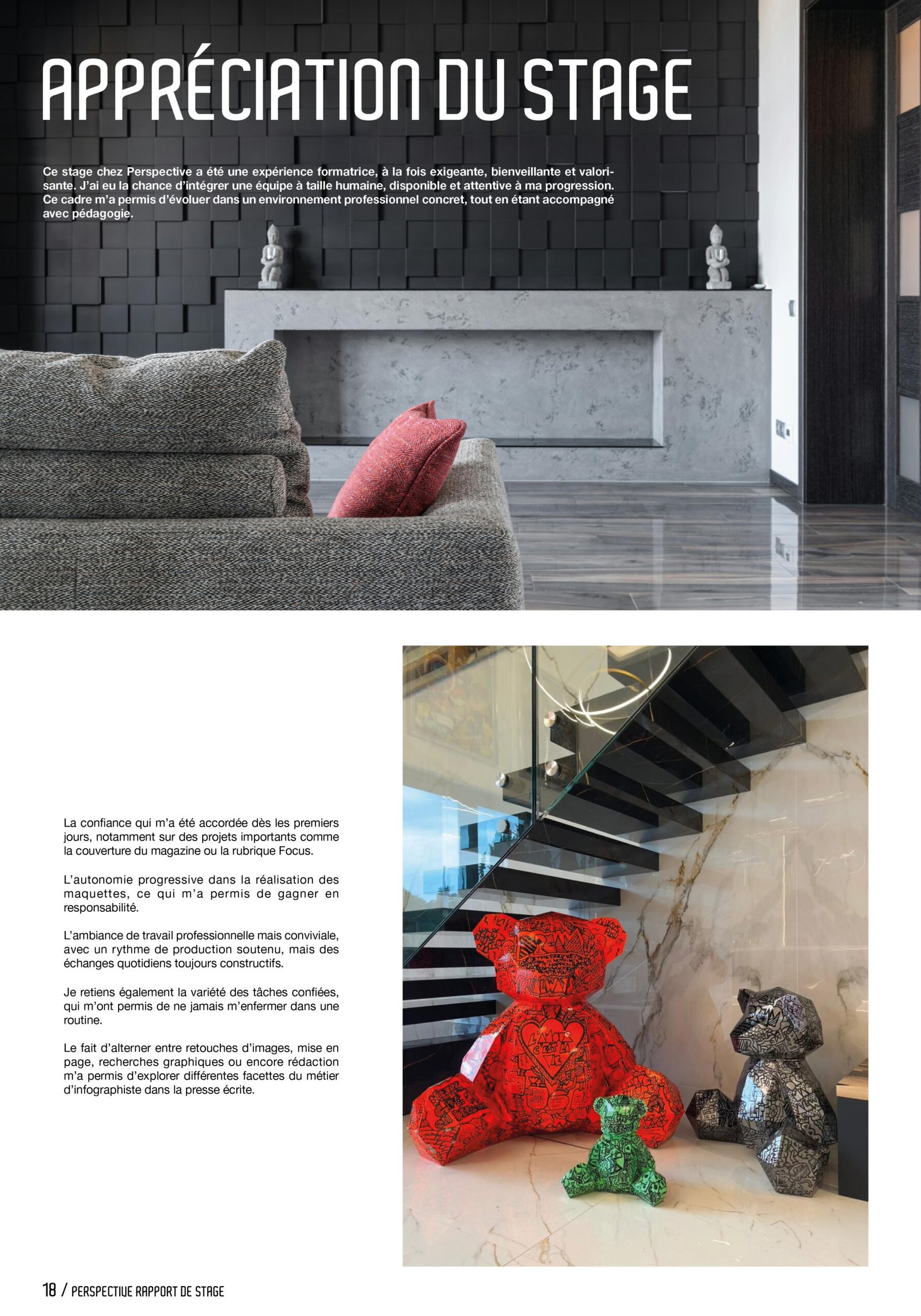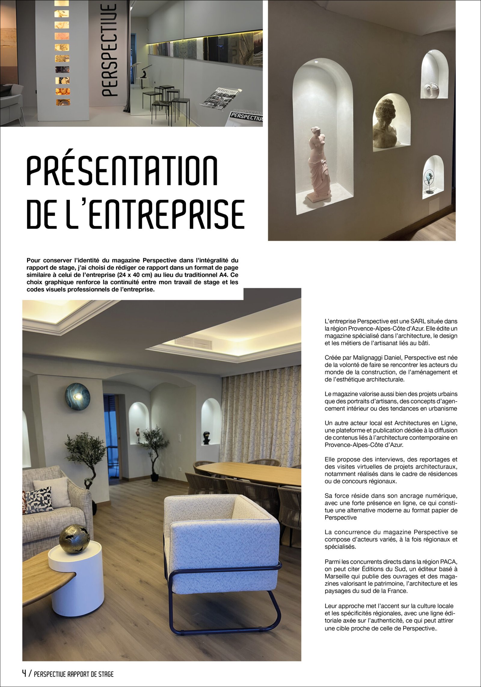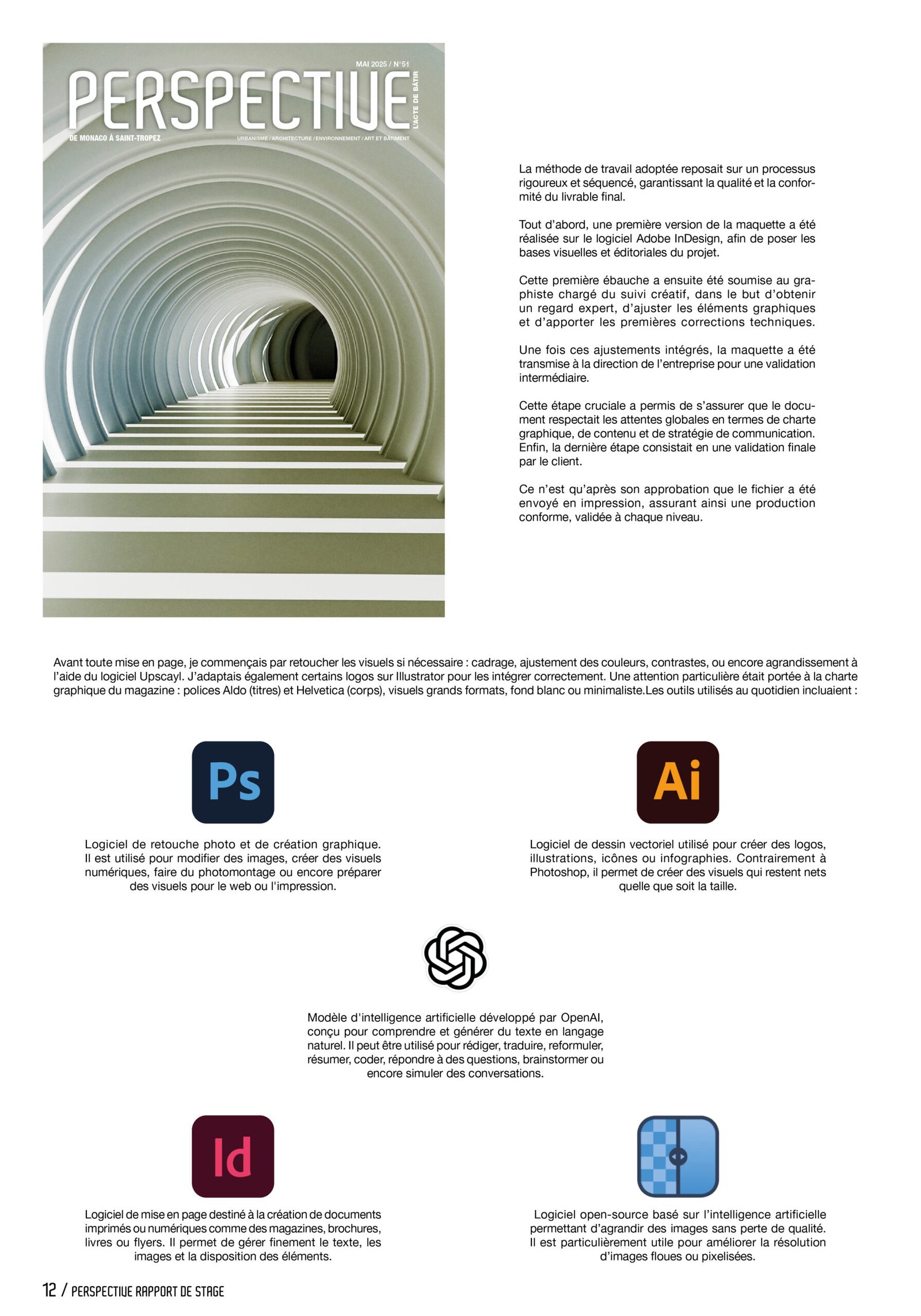 Dans le cadre de mon cursus, j’ai réalisé un stage de deux mois au sein du magazine Perspective, une publication spécialisée dans l’architecture contemporaine. Ce stage avait pour objectif de me plonger dans un environnement professionnel en lien avec la création graphique, et de mettre en pratique les connaissances acquises en cours. Ce rapport a pour vocation de présenter l’entreprise, les missions qui m’ont été confiées ainsi que les compétences développées au cours de cette expérience.